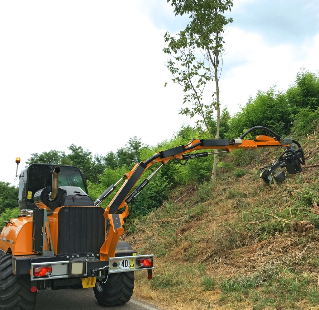 Unsere Energreen-Auslegermulcher der Baureihe ILF mit den Modellen Athena, Alpha, Aspen und Kommunal stellen ihr eigenes, selbst angetriebenes, Trägerfahrzeg dar. Von daher benötigen wir für unsere Auslegermulcher keinen Unimog; viel mehr: die ILFs besitzen die Reife es locker mit einem Unimog aufnehmen zu können und in Sachen Mulchleistung liegen Sie mindestens eine Armlänge voraus. Dafür spricht: Auslegerweiten bis 15 Meter und ein um 180 schwenkbarer Mulchkopf, sodass sowohl auf der Hin- als auch auf der Rückfahrt eine Bahn ohne wenden der Maschine bearbeitet werden kann. Die drehbare Kabine schafft außerdem einen höchstergonomischen Arbeitsplatz mit der Hauptblickrichtung zur Arbeit.