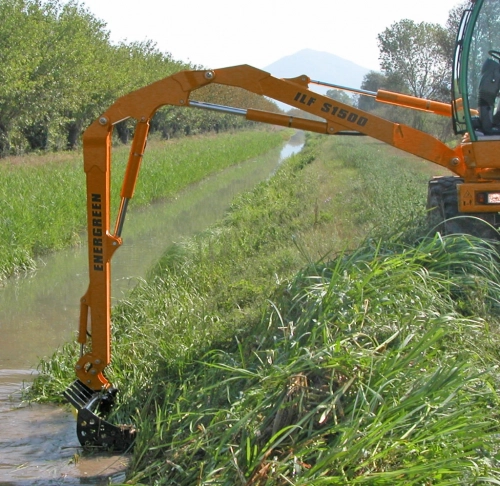 Der Grabenräumlöffel Ditch Bucket ist für den professionellen Einsatz in der Landschaftspflege geplant. Er eignet sich insbesondere für die Instandhaltung von Böschungen und Banketten sowie zum Räumen von Kanälen, Flüssen, Wasserläufen und für den Einsatz bei Umweltsanierungsarbeiten, um das Schnittgut aufzusammeln und den regelmäßigen Wasserabfluss zu gewährleisten. Lieferbar mit 100 und 150 cm Arbeitsbreite. Der Grabenräumlöffel kann mithilfe einer speziellen Montageplatte an den Teleskopauslegern der selbstfahrenden Geräteträger der Serie ILF von Energreen montiert werden.