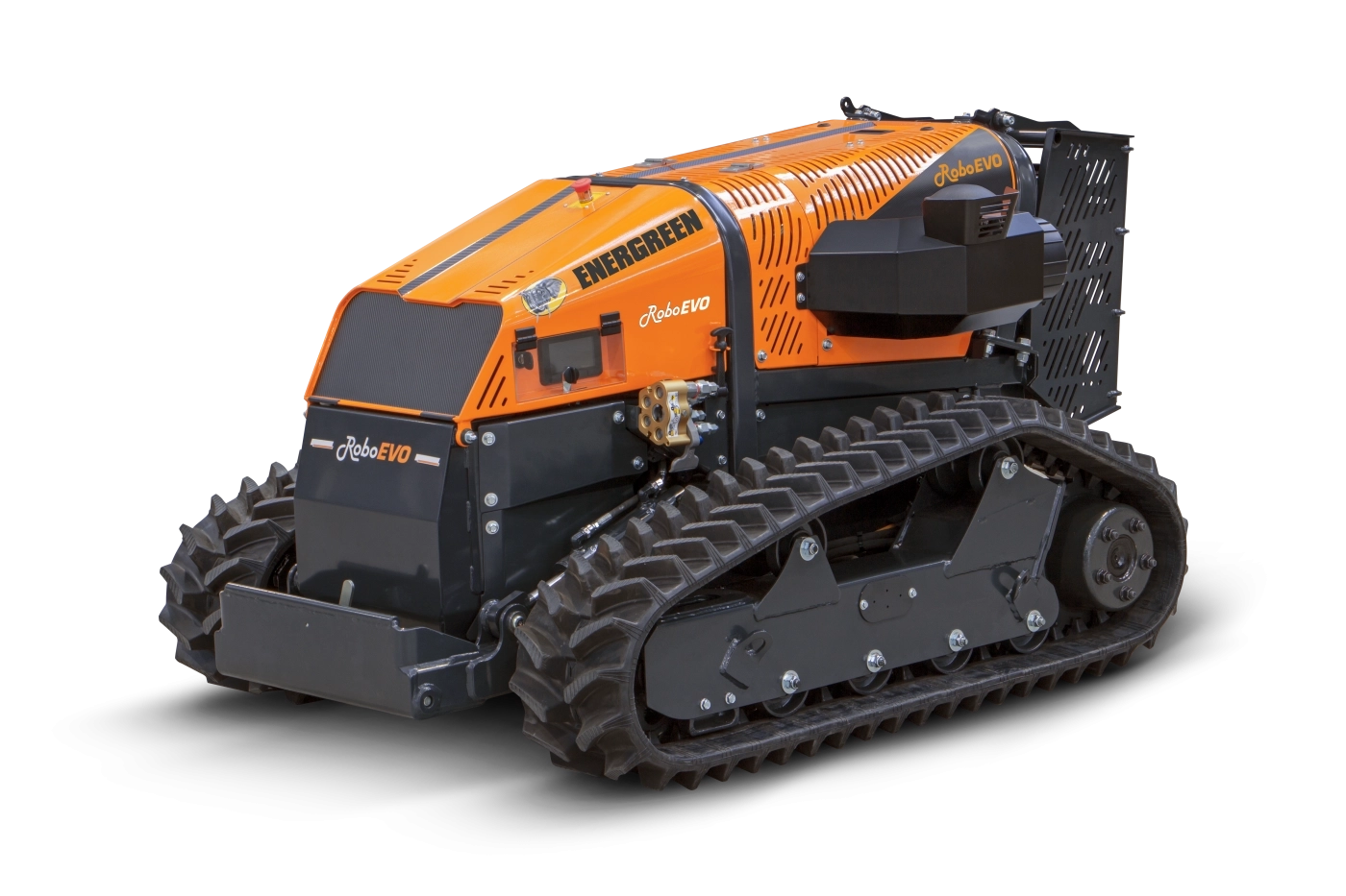 Die Energreen-Geräteträger bestechen durch ihre Zuverlässigkeit und Performance. RoboEVO ist ein funkgesteuerter Geräteträger, der auch in besonders schwierigem und schwer zugänglichem Gelände mit Steigungen bis zu 55° eingesetzt werden kann. Ausgestattet mit einem kraftvollen 40-PS-Dieselmotor der Abgasstufe Stage V und den zwei doppeltwirkenden hydraulischen Steuergeräten kann dieser Multifunktionsprofi mit vielen verschiedenen Anbaugeräten ausgestattet werden.
